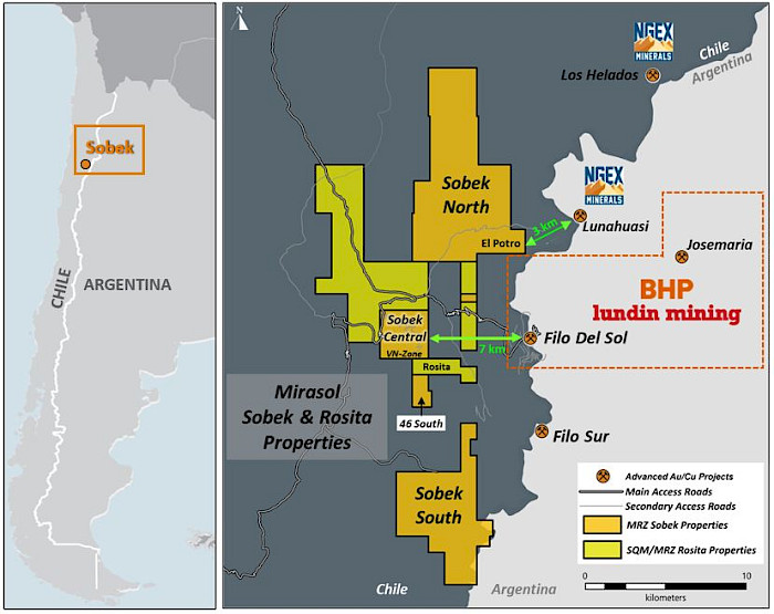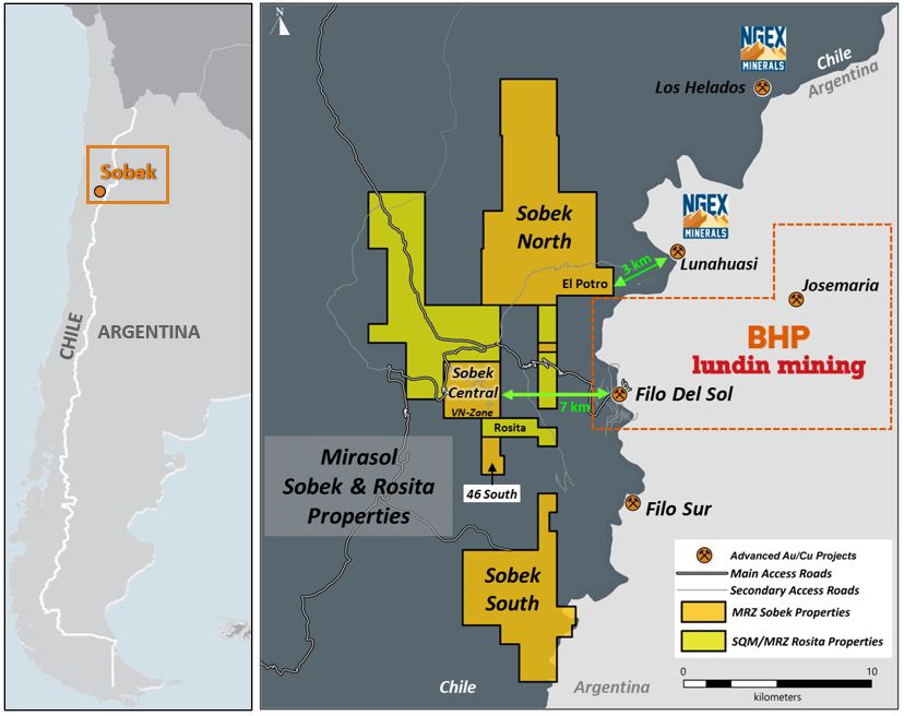 Mirasol signed a landmark option agreement with Sociedad Química y Minera de Chile SA (“SQM”) doubling the size of the flagship Sobek Project in the Vicuña Copper-Gold-Silver District of northeast Chile (news release February 14, 2024). The SQM Property (“Rosita”) covers 11,500 ha extending the Sobek Project to the west and to the east, and importantly unifying the Sobek Central block with the Sobek North block. The combined property has doubled Mirasol’s land holding in the district for a total of 22,840 ha. The eastern portion of the Rosita property positions Mirasol within 3 km of the giant Filo Del Sol Project and the Sobek North block is 3 km from Lunahuasi discovery both within the heart of the Vicuña Copper-Gold district. SQM has granted Mirasol the exclusive option to earn 80% of the Rosita Project, subject to a 2.0% NSR royalty, by Incurring US$4 million in exploration expenditures and making annual option fee payments for a total of US$3 million scheduled over 6 years.